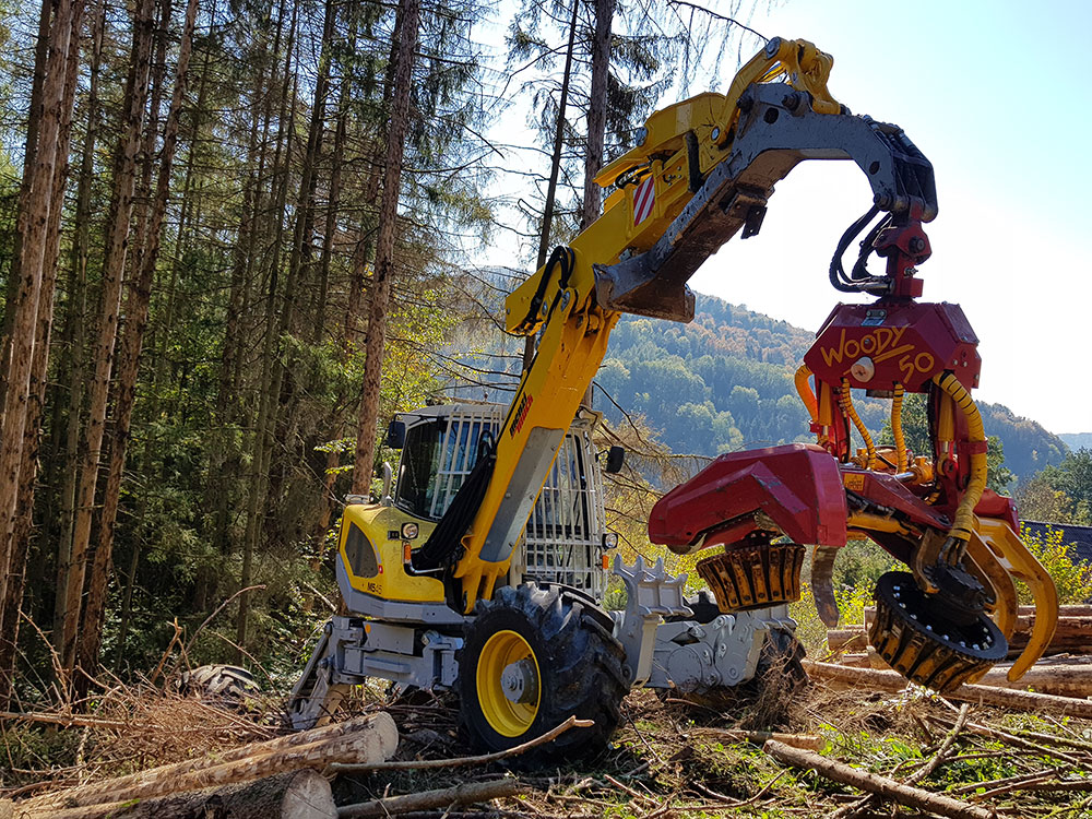 Wir erledigen für Sie das mühsame Sägen und Spalten Ihres Brennholzes und liefern es zu Ihnen nach Hause. Wir machen Rodungen, Problembaumfällungen, sanieren Forstwege. Dabei setzen wir moderne, effiziente Maschinen und Geräte ein, wie z. B. den Schreitbagger "Menzi Muck", der nahzu alle Arbeiten, in schwierigstem Gelände, erledigen kann.